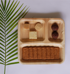 Aadhira Eco Crafts supplies biodegradable plates made of areca leaves to the international market to help reduce the use of plasticware in the corporate sector.